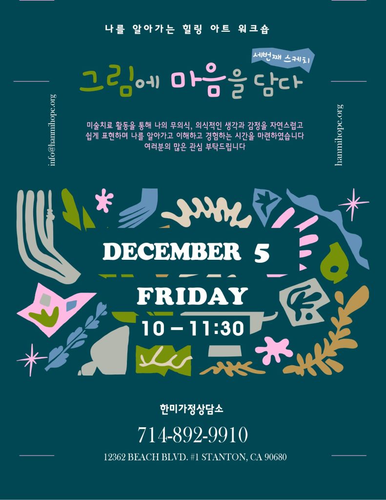 미술심리치료에 대해 많은 관심과 호응으로 이번 12월에 힐링아트 워크숍